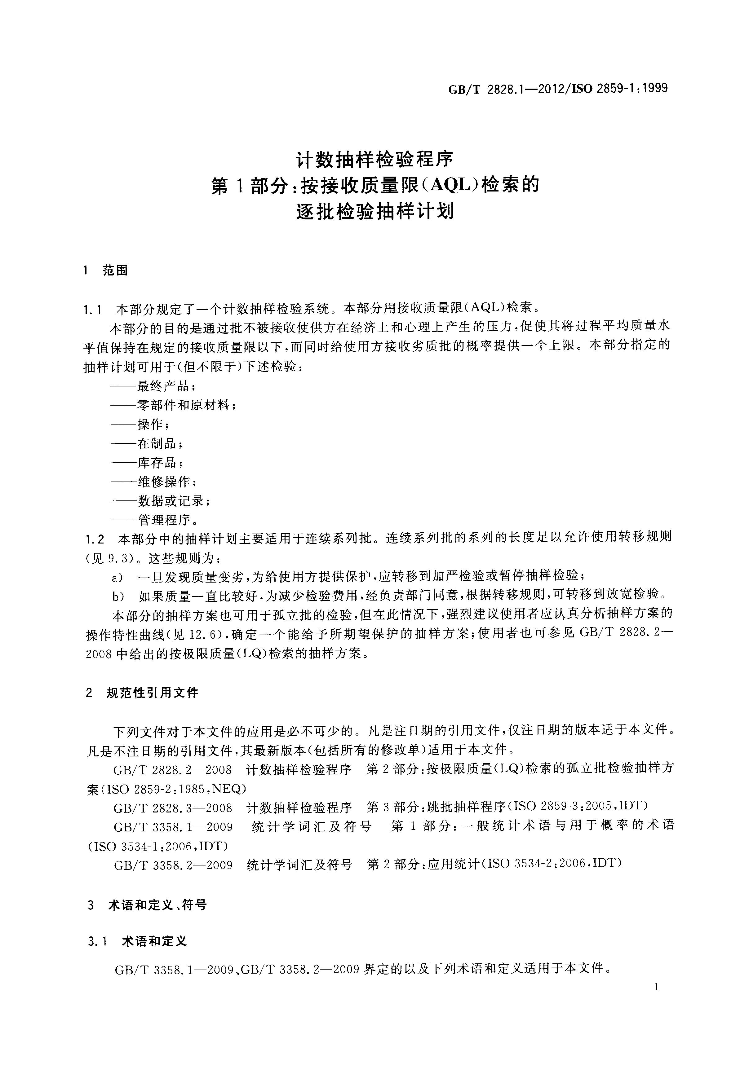 GB 2828.1-2012抽檢标準